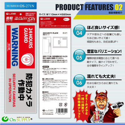 防犯プレート セキュリティプレート 防犯カメラ作動中 OS-275N