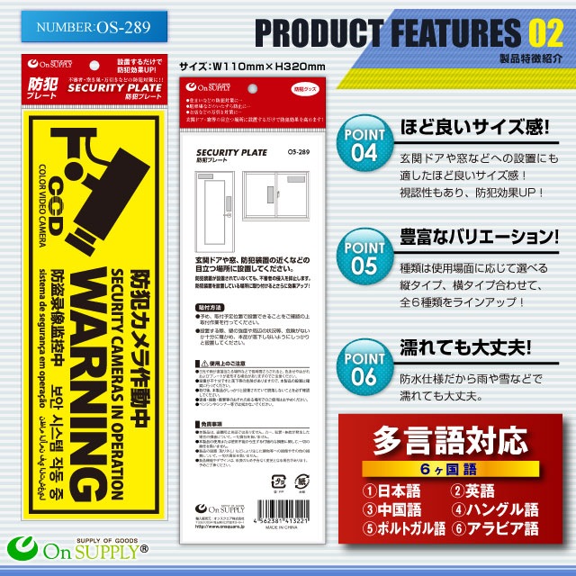 防犯プレート セキュリティプレート 防犯カメラ作動中 多言語対応 OS-289