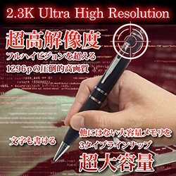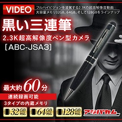 「ABC-JSA3」はフルハイビジョンを超える超高解像度2.3Kの画質を誇る、アキバカムオリジナルシリーズ第15弾にあたるペン型カメラです。