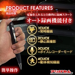 これはアキバカムオリジナルでしか手に入りません。 機能についても通常録画だけでなく様々な機能を豊富に搭載し、多彩な環境に応用可能です。実際にボールペンとして使うこともでき、パッケージには替え芯2本も付属しています。
