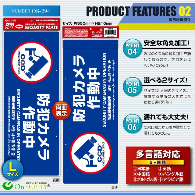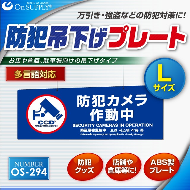 防犯吊下げプレート セキュリティプレート 防犯カメラ作動中 OS-294