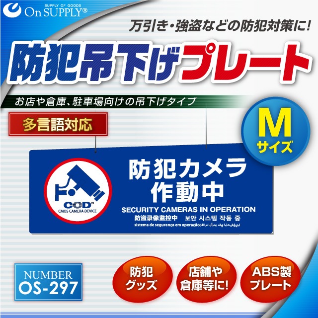 防犯吊下げプレート セキュリティプレート 防犯カメラ作動中 OS-297