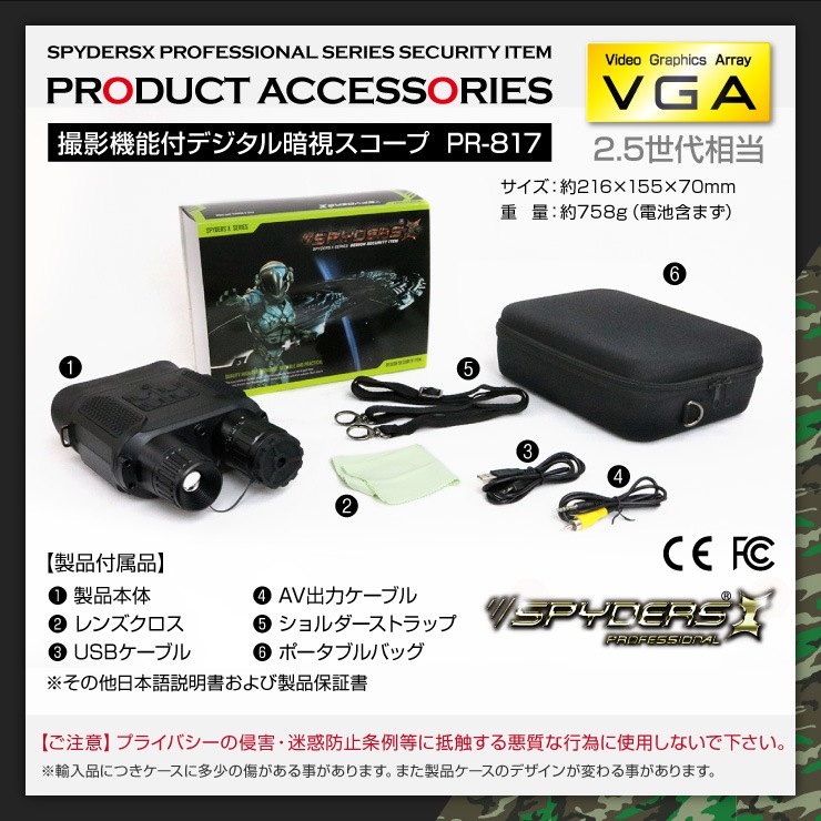暗視スコープ 双眼鏡型ナイトビジョン PR-817 スパイダーズX PRO