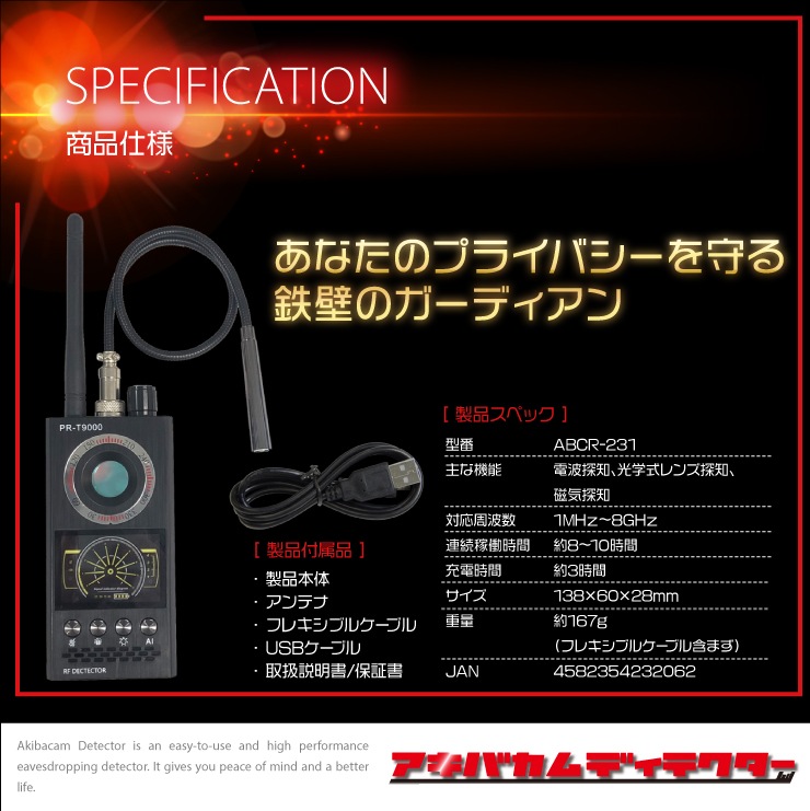 盗聴器発見器 電波を発見する電波発見器タイプはあらゆる電波が調査可能 アキバカムディテクター エンタープライズ ABCR-231 磁気探知 カメラレンズ発見