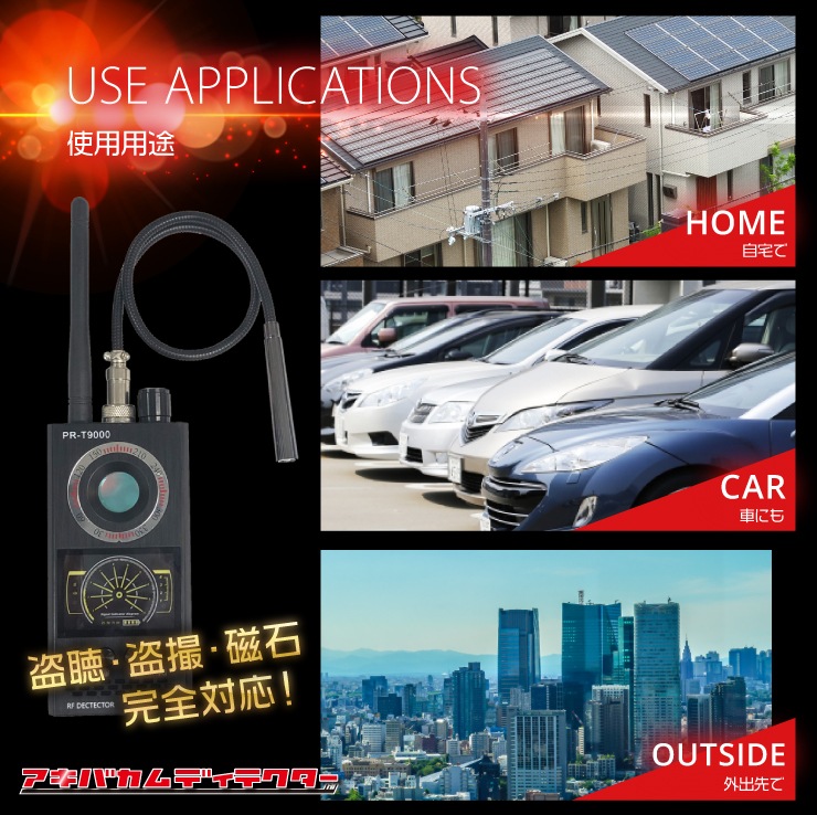 電波探知モード、カメラレンズ発見モード、そして磁気探知機能を搭載していますので、 職場やご自宅、旅先の宿泊ホテルなどあらゆる場所での盗聴・盗撮・追跡リスクにこれ1台で対応します!