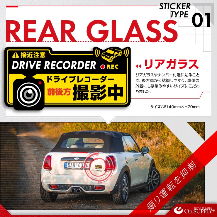 車両等の窓ガラスなどの目立つ所に貼るだけで煽り運転の抑止・防犯効果アップ!