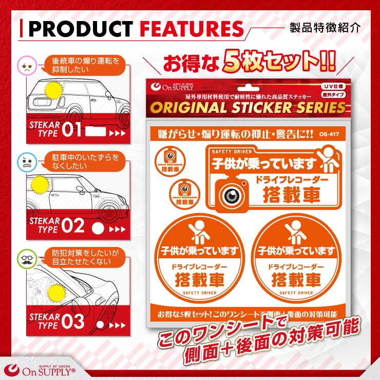 防犯ステッカー 子供が乗っています / ドライブレコーダー搭載車 OS-417