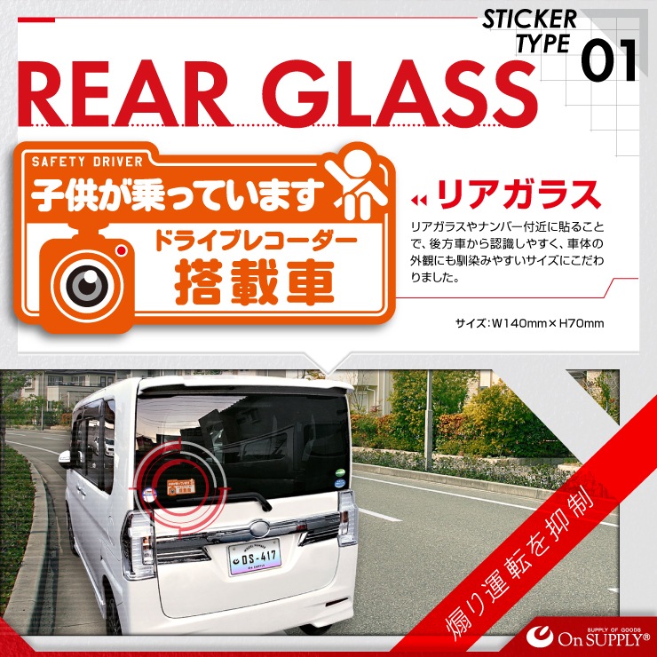 車両等の窓ガラスなどの目立つ所に貼るだけで煽り運転の抑止・防犯効果アップ!