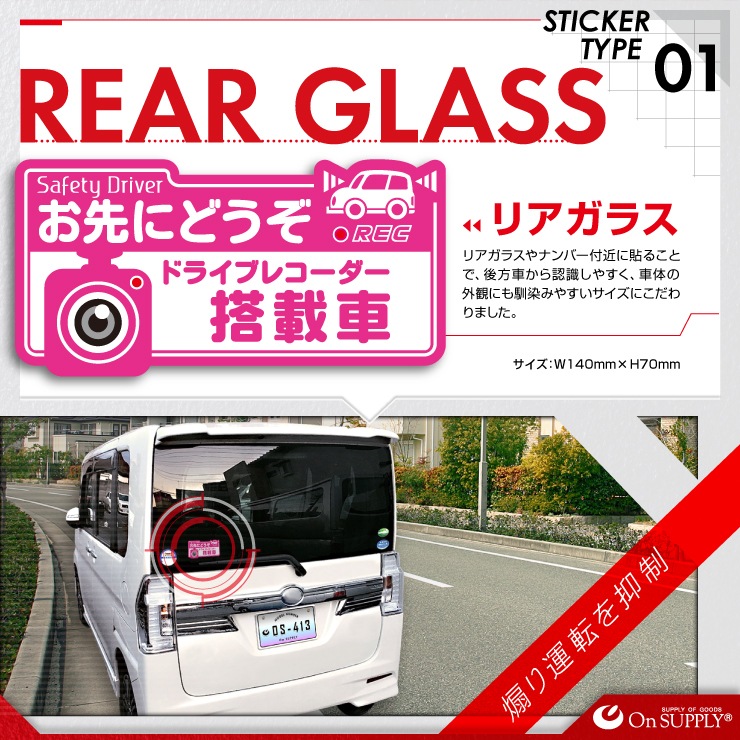 車両等の窓ガラスなどの目立つ所に貼るだけで煽り運転の抑止・防犯効果アップ!