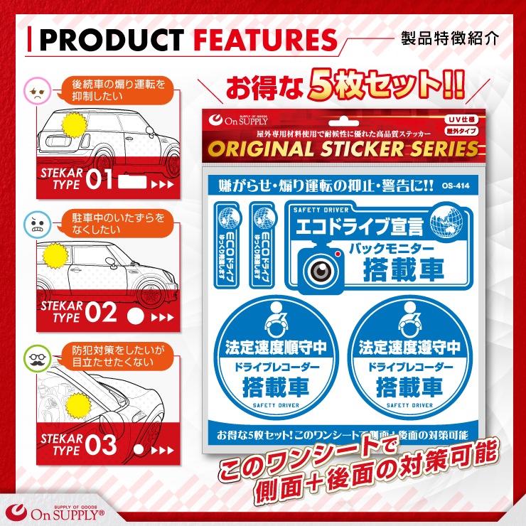 5枚セットなので側面の両側、後面に合わせて便利に使い分けられます!