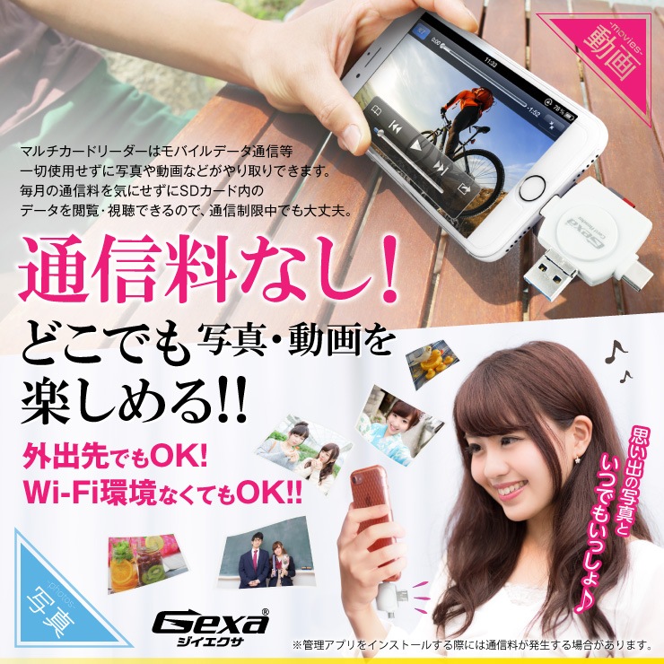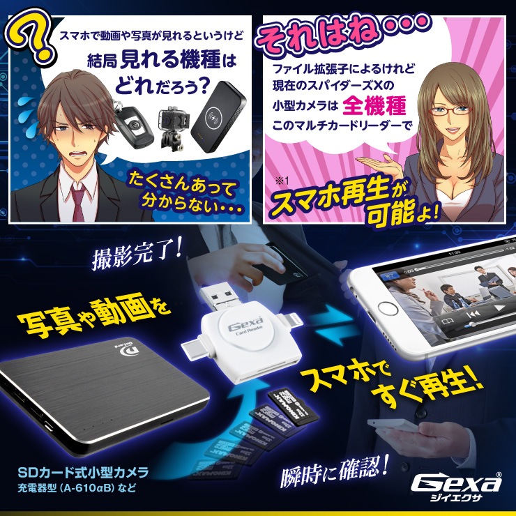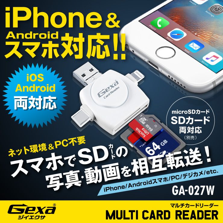 iPhone Android スマホ対応 SDカードリーダー Lightning USB Type-C microUSB GA-027W Gexa ジイエクサ