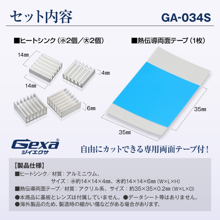 ヒートシンク 14×14×高さ4mm2個 高さ6mm2個 4個入 GA-034S ジイエクサ Gexa