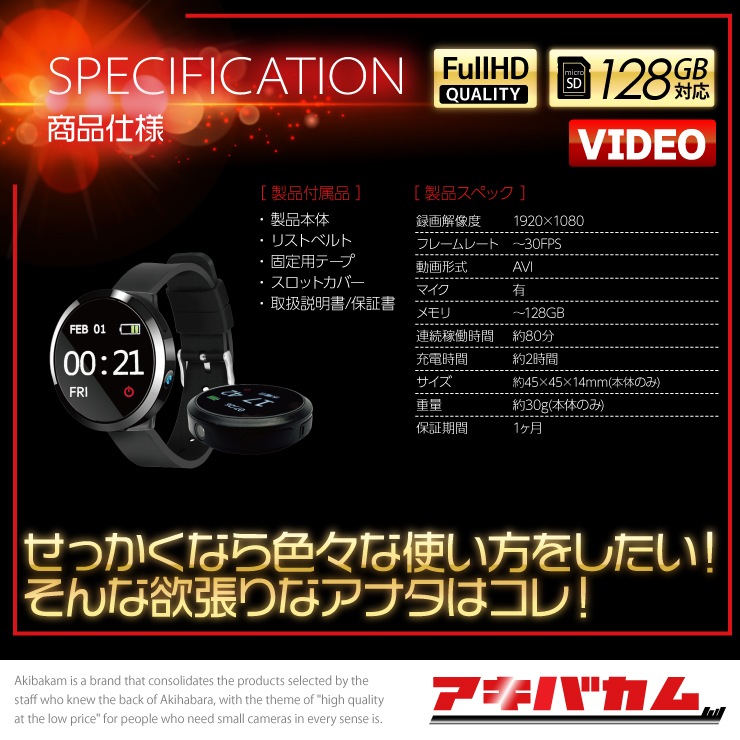 アキバカムオリジナル 腕時計型カメラ 3WAYマルチ 多用途 ABC-MULTI3