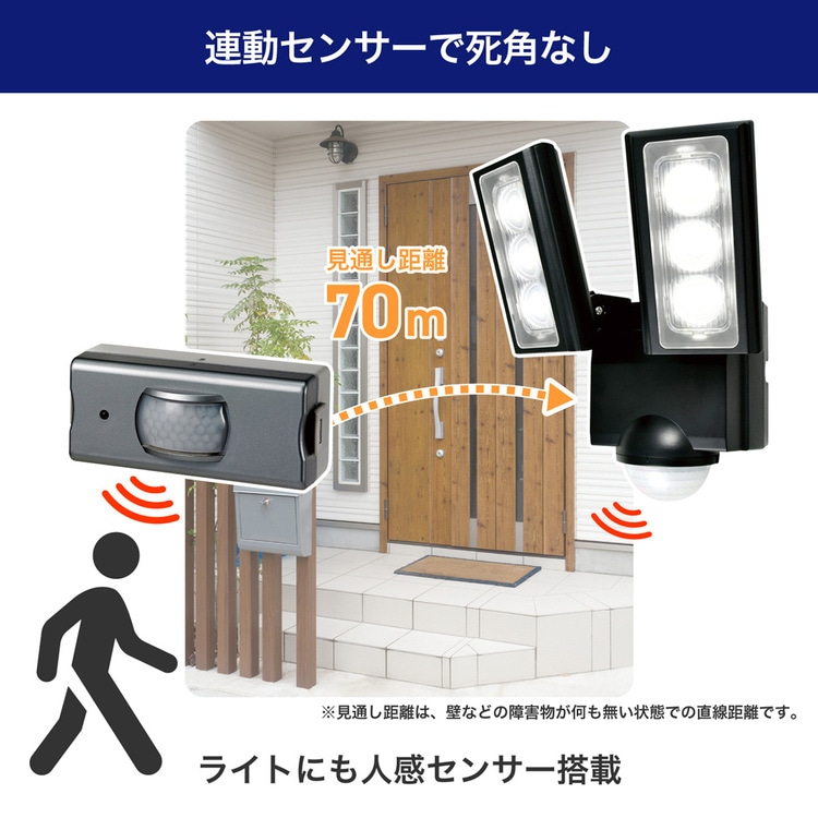 ●本体のセンサーと連動センサーで死角なく家の周囲を検知できます