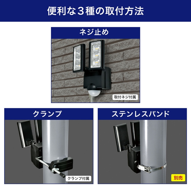 エルパ 防犯センサーライト 2灯 人感センサー付き 屋外 防水 ESL-RS1202SET