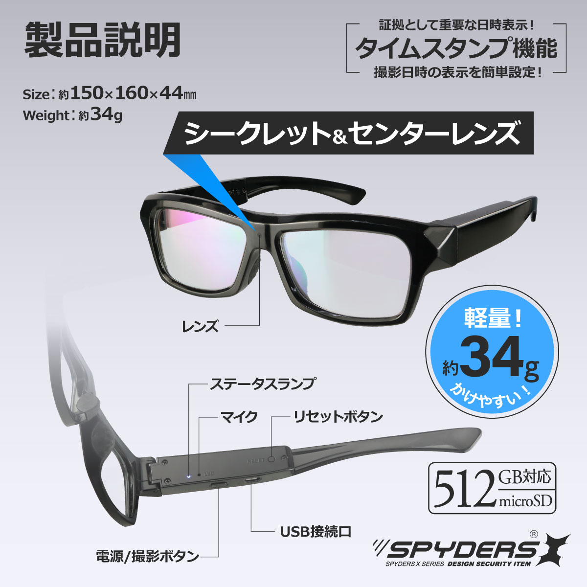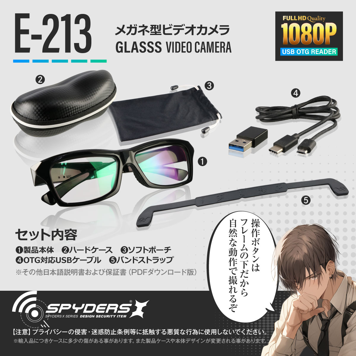 スパイダーズX メガネ型カメラ E-213 OTG機能 512GB対応