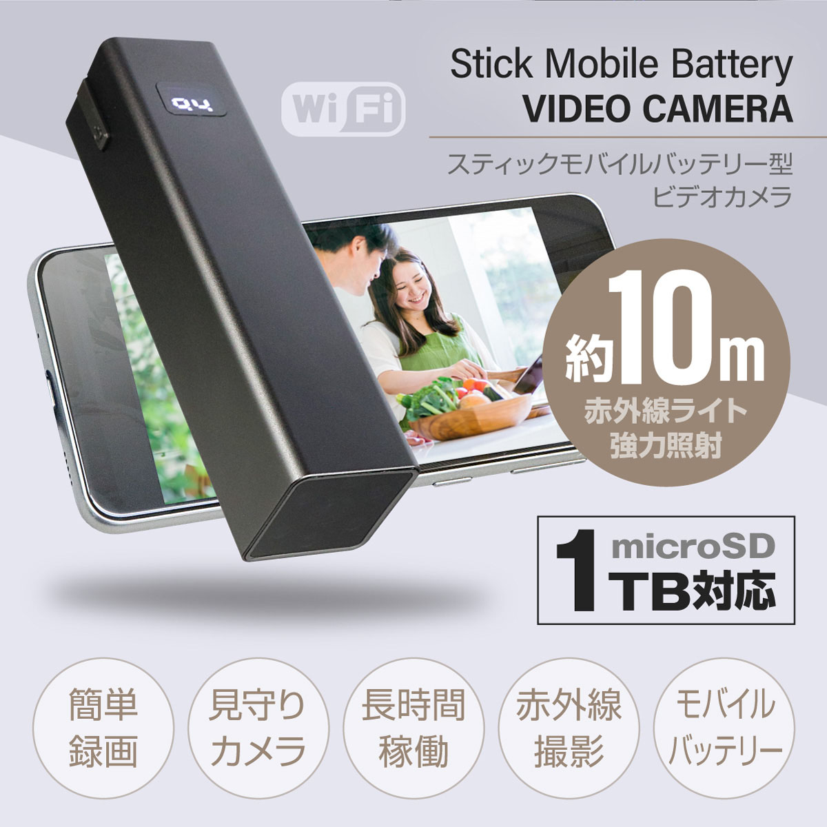 Gexa(ジイエクサ×スパイダーズX) スティック充電器型ビデオカメラ モバイルバッテリー型カメラ GX-305 小型カメラ Wi-Fi対応 赤外線 暗視補正