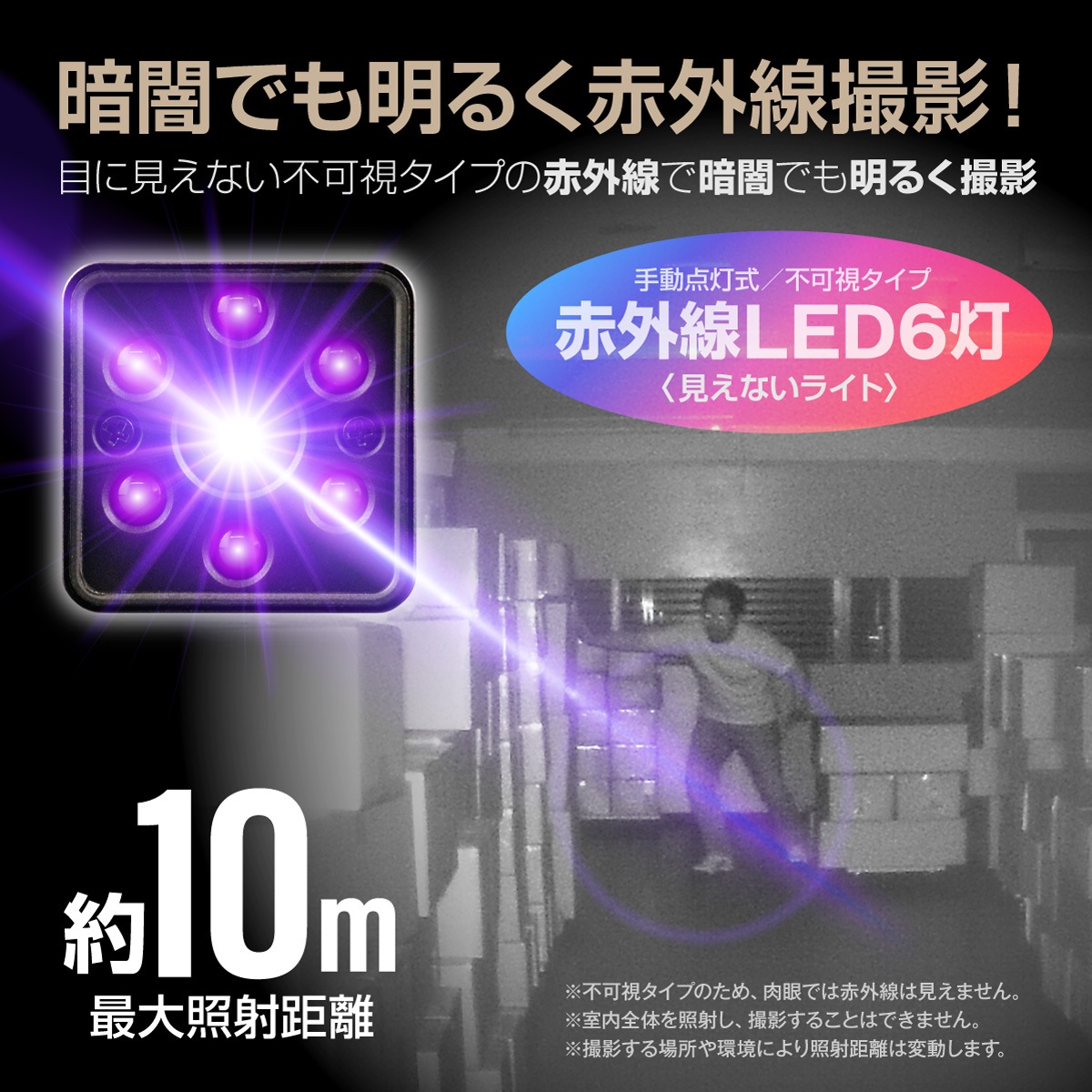 ★約10mの強力赤外線ライトを搭載!暗闇での証拠撮影も明るく映し出します!★