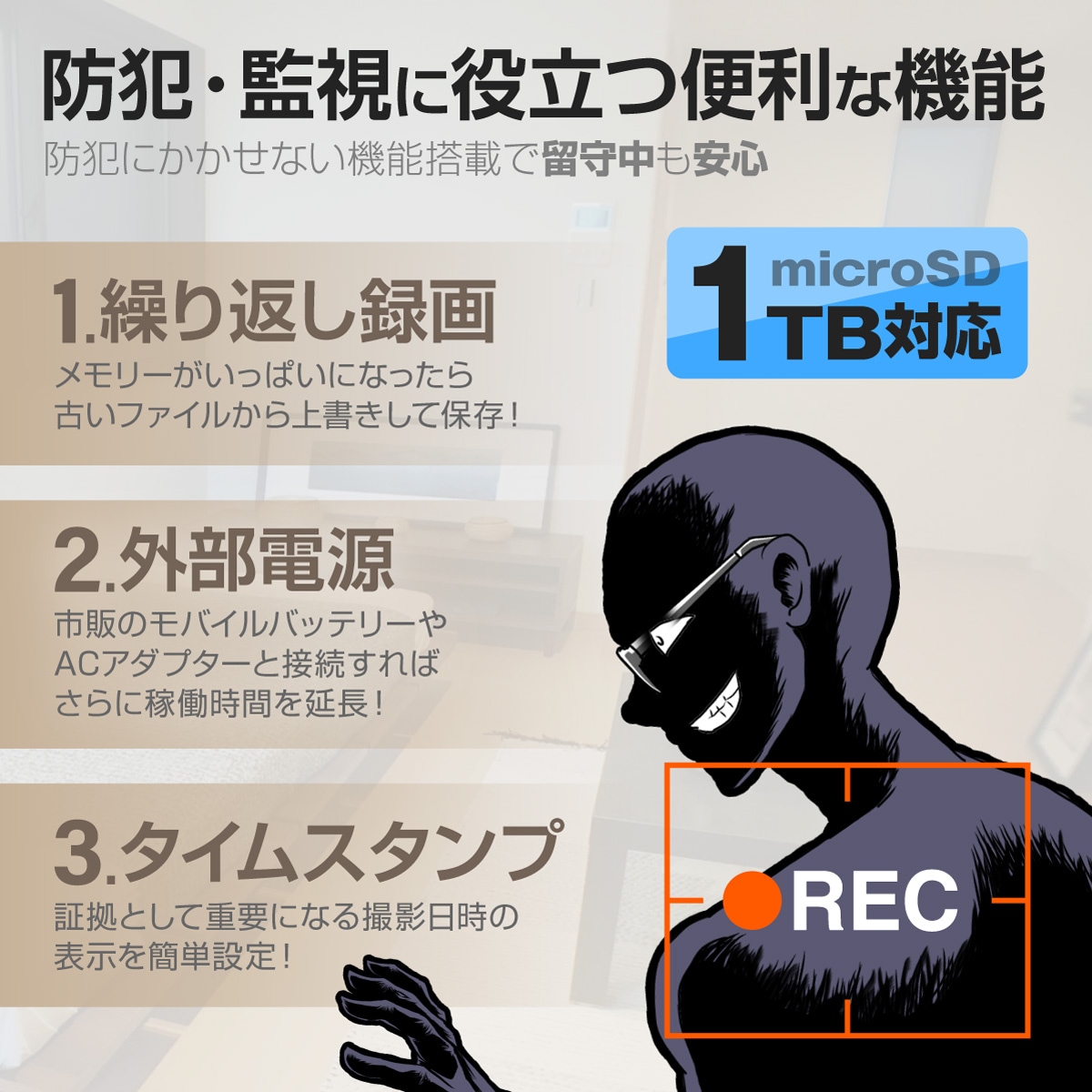 ★大容量バッテリー内蔵で最大8時間稼働!1TB対応で長時間の録画保存も可能!★