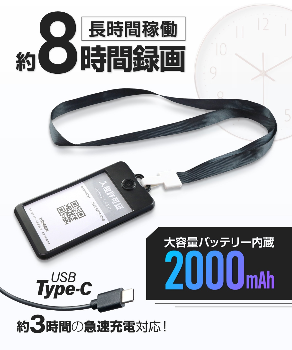 | 【稼働時間】 | 録画:約8時間 ※バッテリー稼働時間は理論値であり稼働時間を保証するものではありません。 |