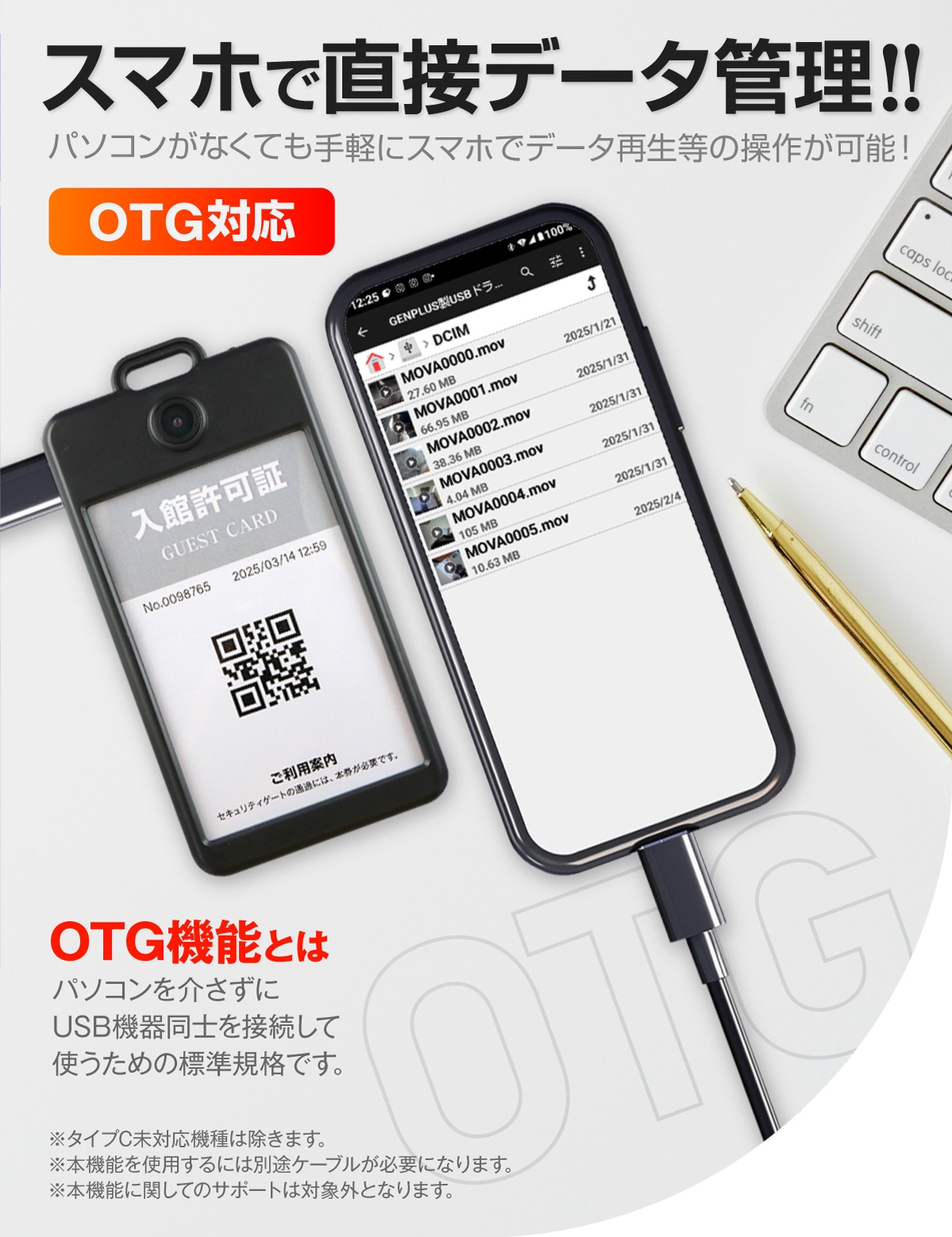 | 【製品機能】 | ・動画撮影 ・動体検知録画 ・繰り返し録画 ・外部電源 ・オート録画 ・OTGリーダー |