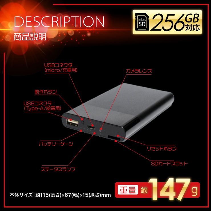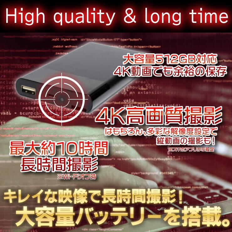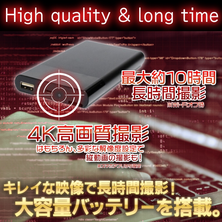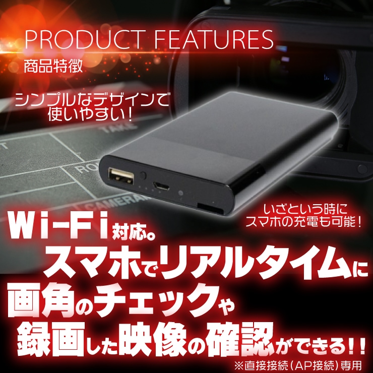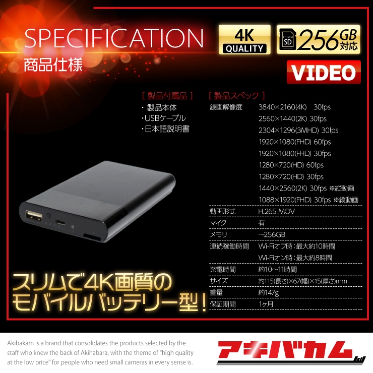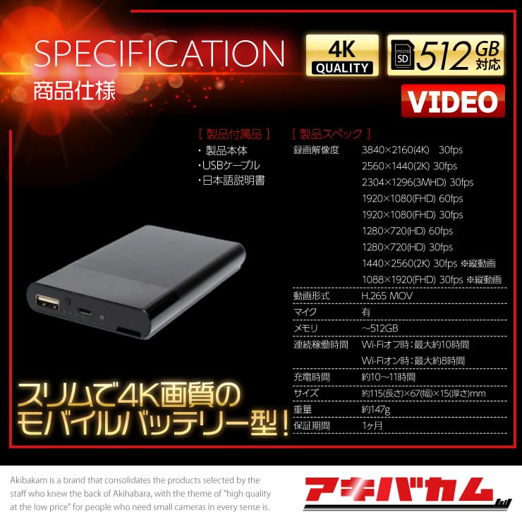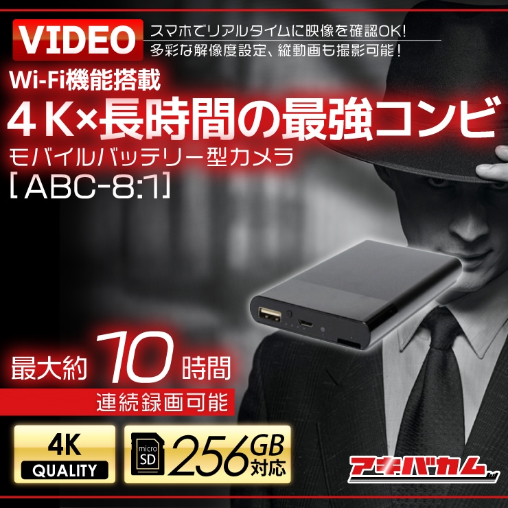 アキバカムオリジナル 4K高画質 Wi-Fi対応 モバイルバッテリー型カメラ ABC-8:1