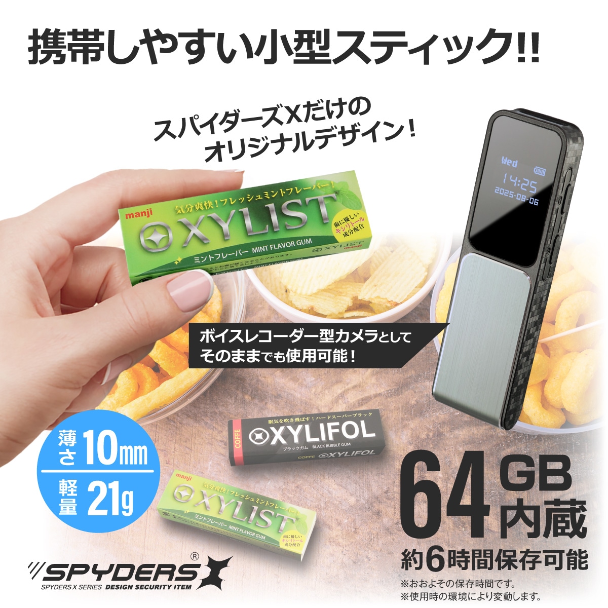 スパイダーズX ガム型カメラ U-203 小型カメラ ボイスレコーダー 64GB内蔵 ガムケース2種類付