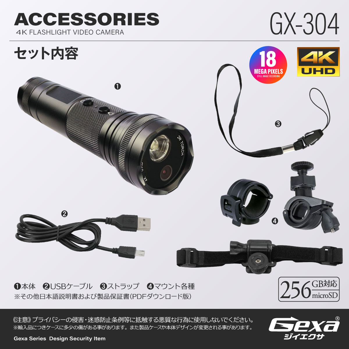 Gexa(ジイエクサ) フラッシュライト型カメラ GX-304 超広角120度 フラッシュライト機能