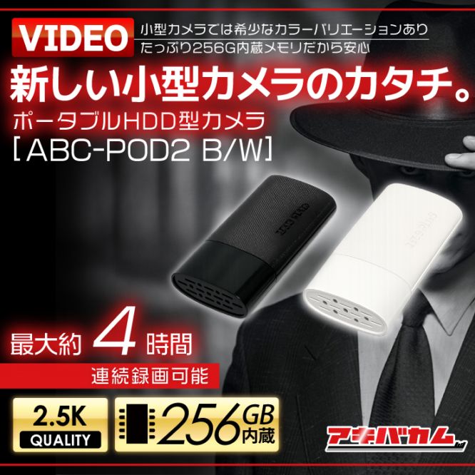 ▶アキバカムオリジナル ポータブルHDD型カメラ ABC-POD2B/W ブラック/ホワイト 256GB内蔵