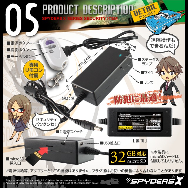●市販のアダプターそっくりで部屋の中を自然に撮影!