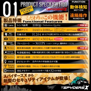 | 【製品機能】 | ・動画撮影 ・静止画撮影 ・動体検知機能 ・外部電源対応 ・繰り返し録画機能 ・ボイスレコーダー ・遠隔操作機能(リモコン操作) |
