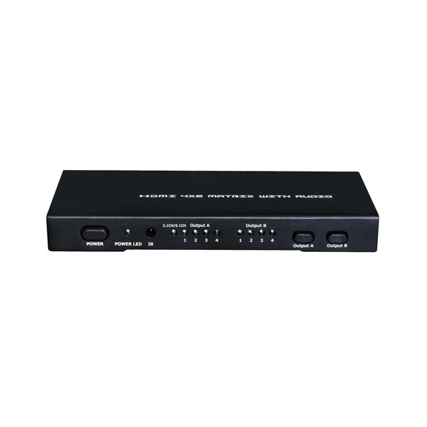 4つの入力を、2つの出力先に、自由に選択して表示が可能な4K(3840×2160)/30Hzに対応したマトリクスタイプのHDMI切替機