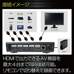 家庭用レコーダー(録画機)には搭載されていないHDMIの入力端子を【4チャンネル】搭載。
