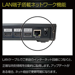 LANケーブルでご家庭のインターネット回線に接続すると、正確な時刻情報を自動的に取得します。
