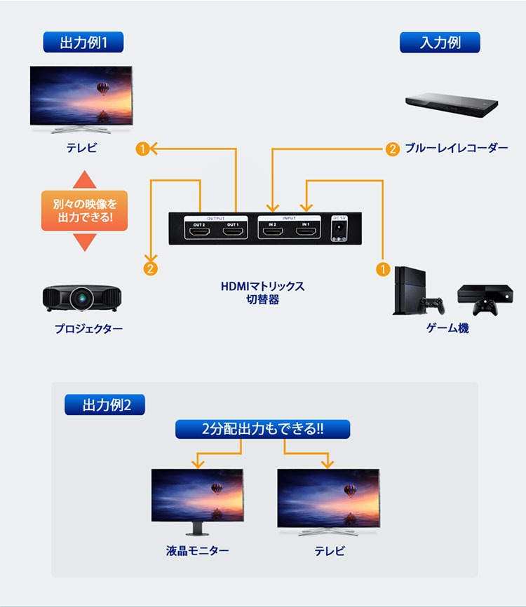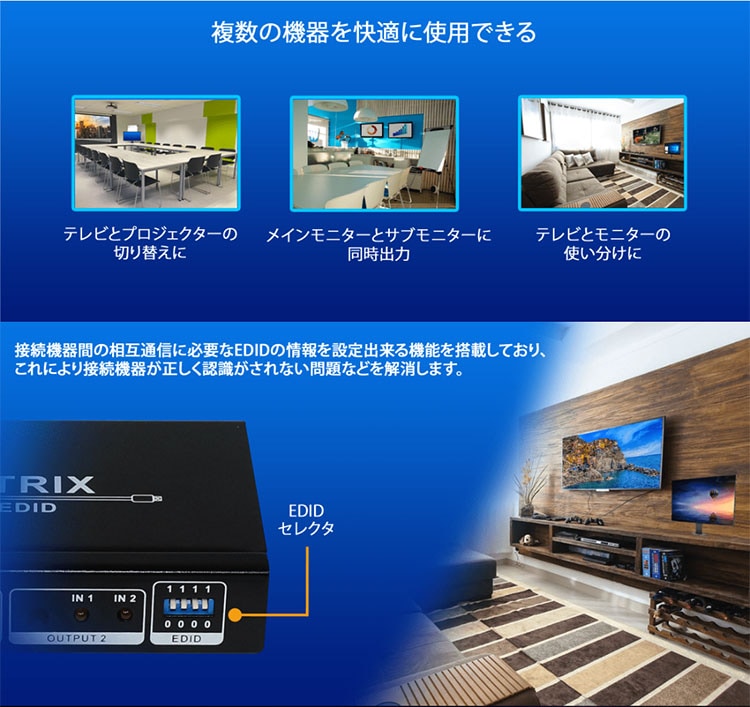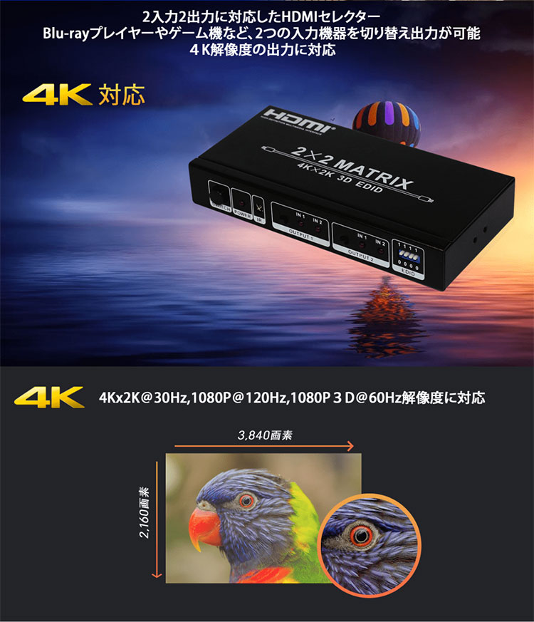 | HDMIバージョン | 1.4a with full 3D and 4K , 入力HDCP1.4, 出力HDCP1.4a |
