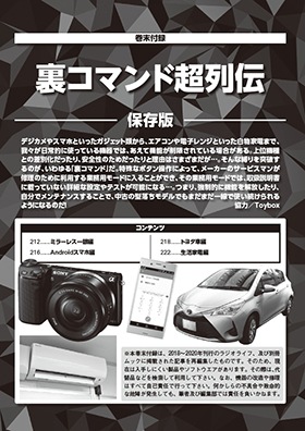 7月号は巻末付録として、家電やトヨタ車の裏コマンド情報をまとめました。