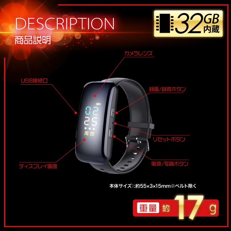 | 付属品 | USBケーブル、ベルト、日本語説明書 |