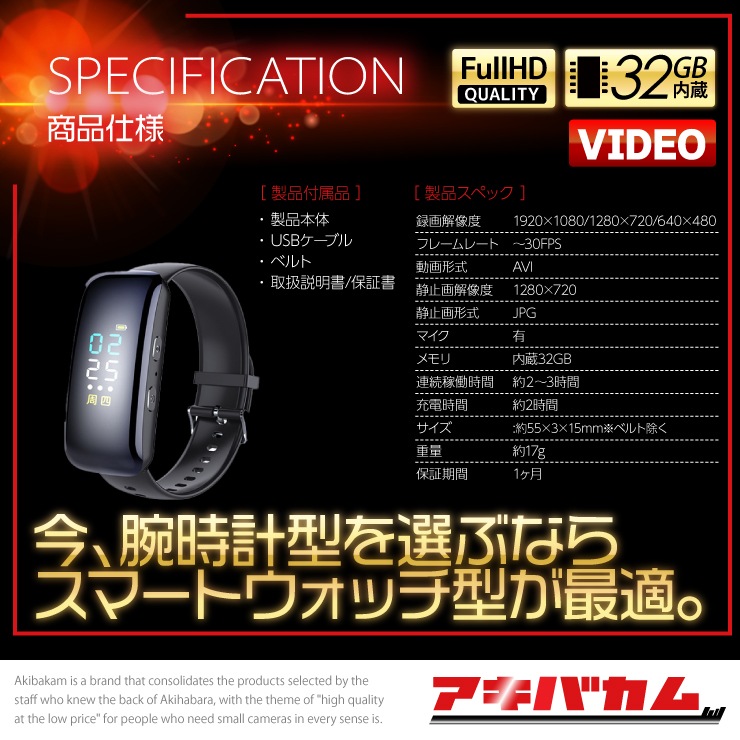アキバカムオリジナル スマートウォッチ型カメラ ABC-SMT9