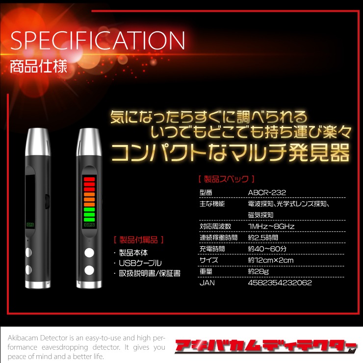 アキバカムディテクター 盗聴・盗撮発見器 磁気探知 多機能発見器 ABCR-232
