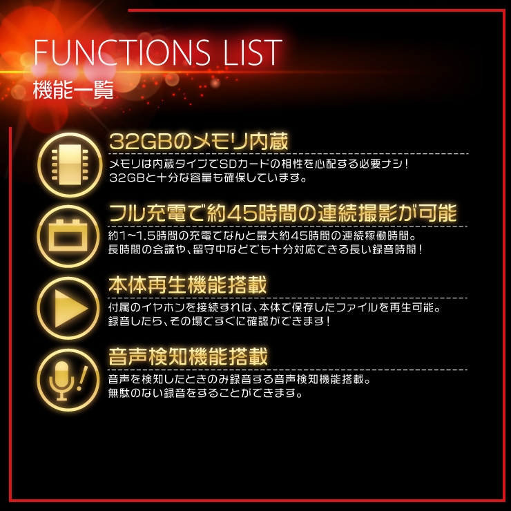 音を検知したときのみ録音する音声検知機能を搭載。無駄のない録音をすることができます。