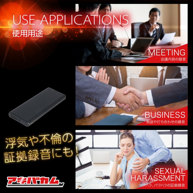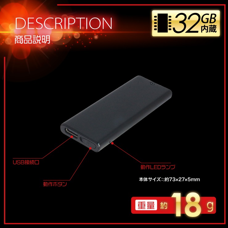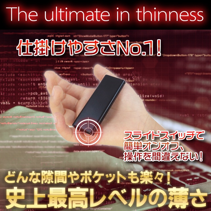 厚さわずか5㎜の超薄型サイズ。相手に気付かれずに録音するのにうってつけの商品です。