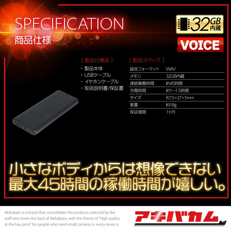 約45時間の連続録音が可能!決定的証拠を逃しません。