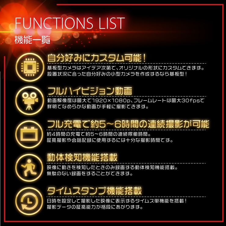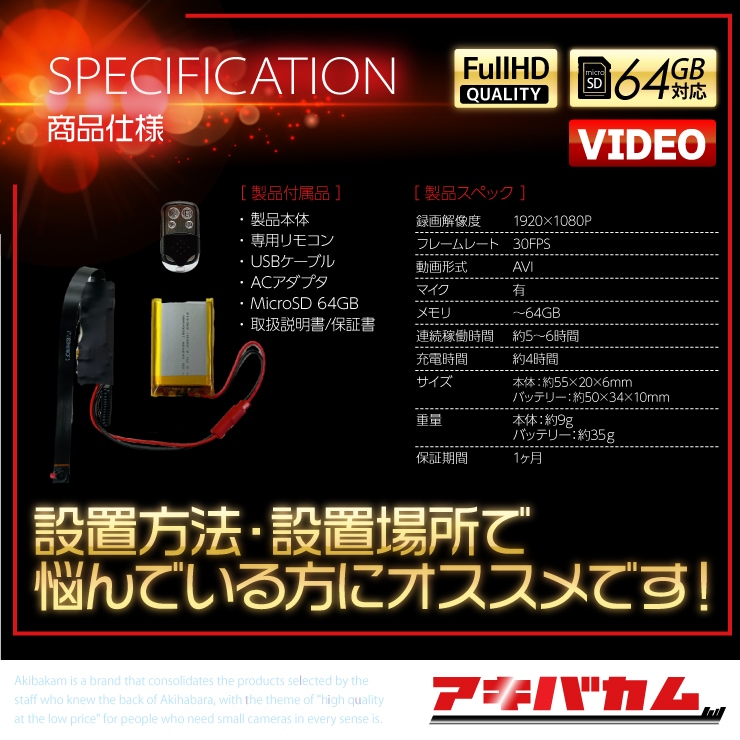 アキバカムオリジナル シンプル&スモール&スリムの3S! 基板ユニット型カメラ ABC-108MIRO 64GBmicroSDカード付属