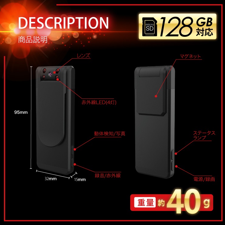 | 商品名 | クリップ型カメラ ABC-96MAG |