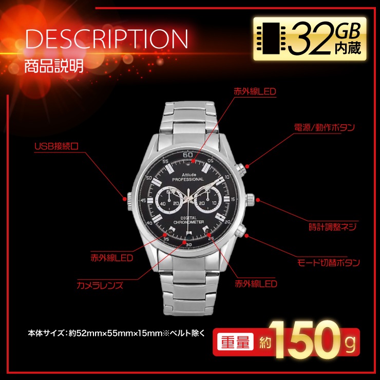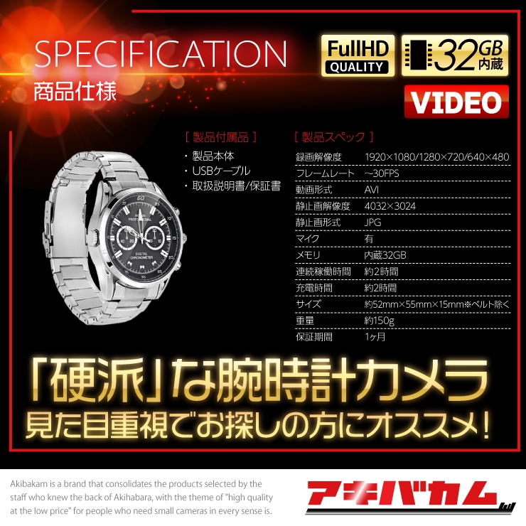 アキバカムオリジナル 赤外線搭載 腕時計型カメラ ABC-PLATA