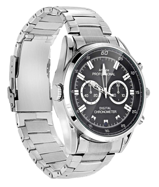 黒文字盤、メタルバンド仕様でカジュアルでもビジネスでも違和感のない装着感!
