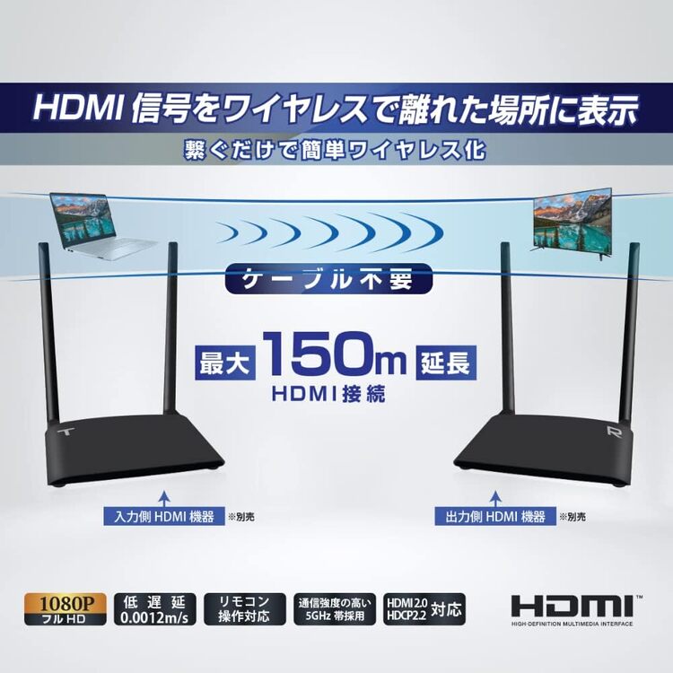 HDMI信号をワイヤレスで離れた場所に表示ができる ワイヤレス HDMI 延長器 TEHDWLEX150S TEC
