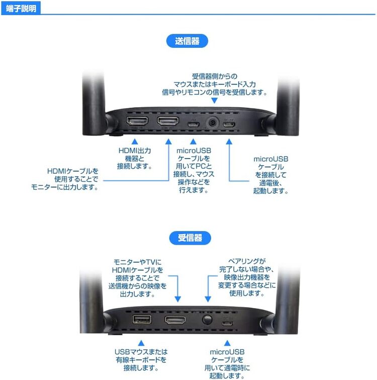 ※本製品は送信器・受信器が1:1で使用するため、受信器への分配などには対応しておりません。