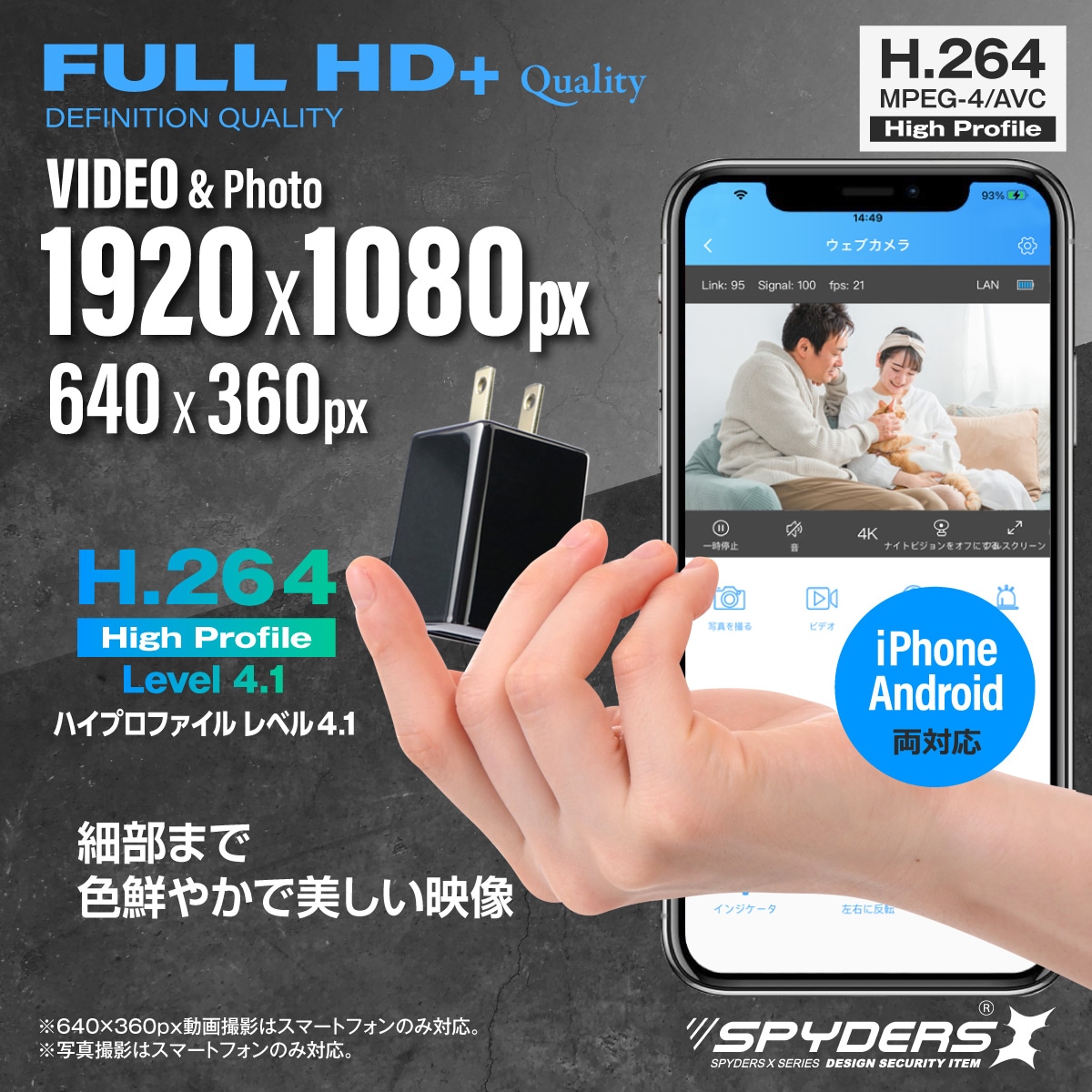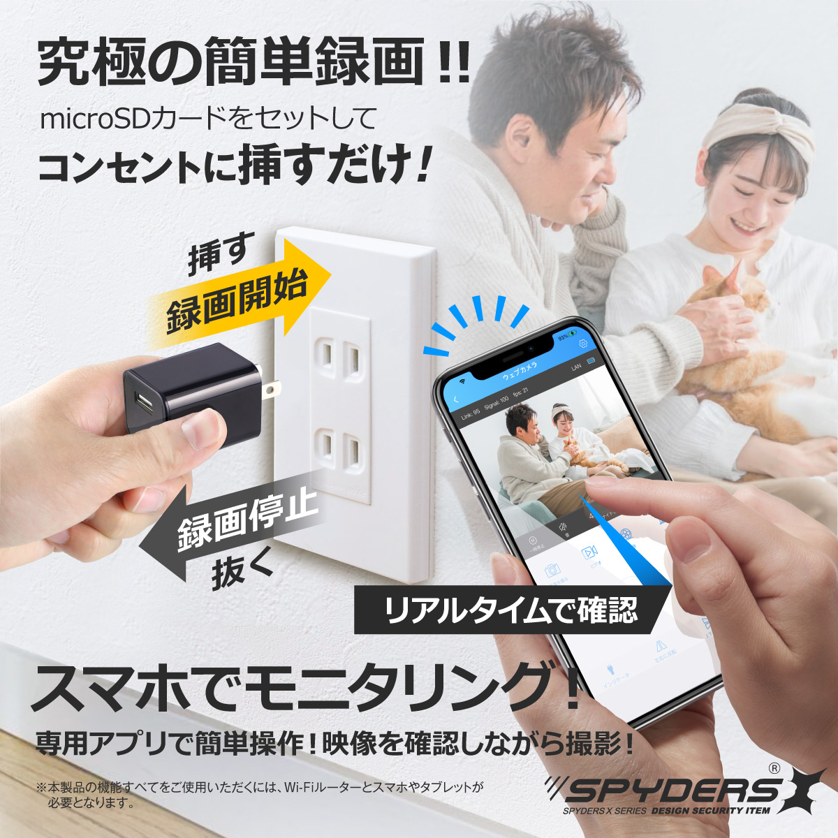 スパイダーズX USB-ACアダプター型カメラ M-973 スパイカメラ 小型カメラ 防犯カメラ Wi-Fi対応