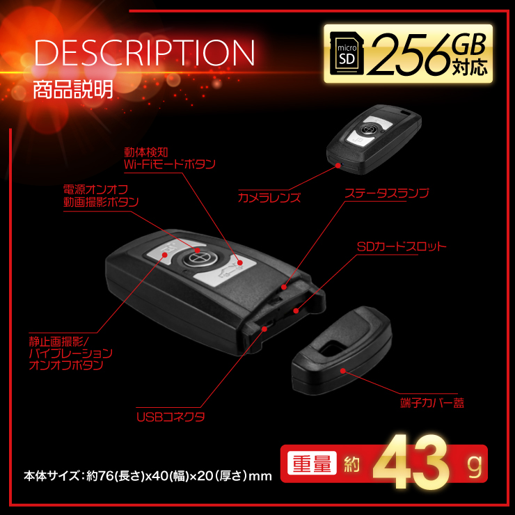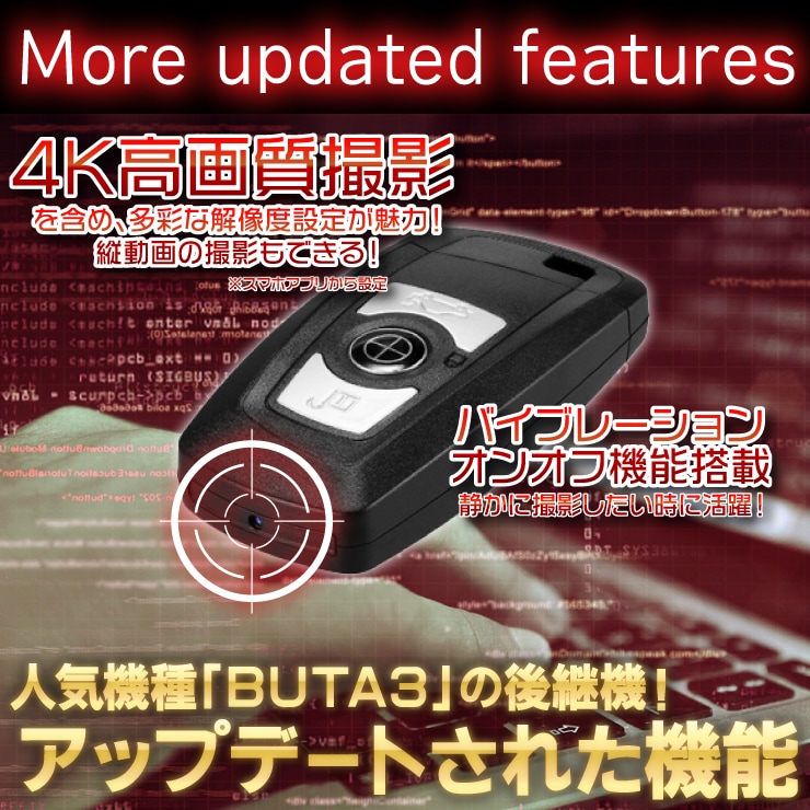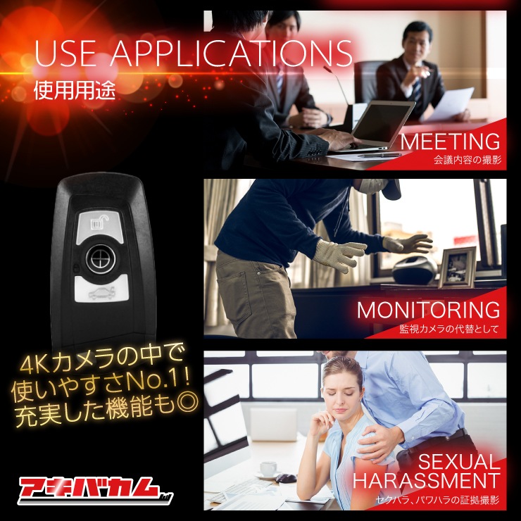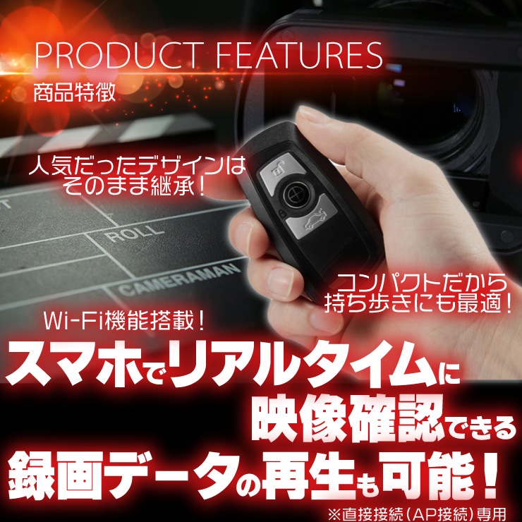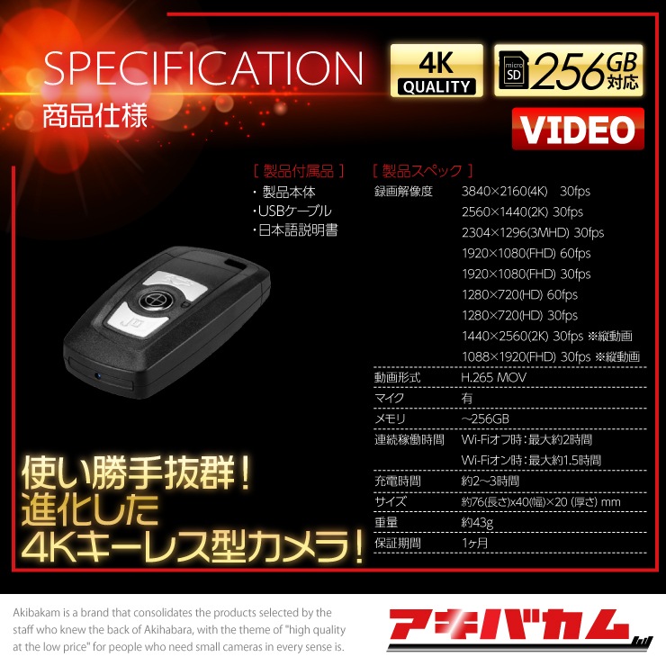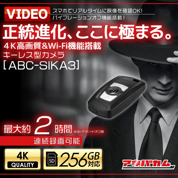 アキバカムオリジナル 4K高画質 Wi-Fi対応 スマホ キーレス型カメラ ABC-SIKA3